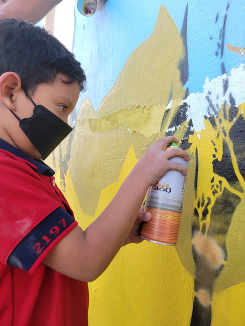 Utilizando la técnica de stencil los niños, niñas y adolescentes tuvieron un acercamiento durante 3 días al proceso de muralismo. Se utilizaron técnicas mixtas en la realización de los murales. Las ubicaciones de los muros que se intervinieron.